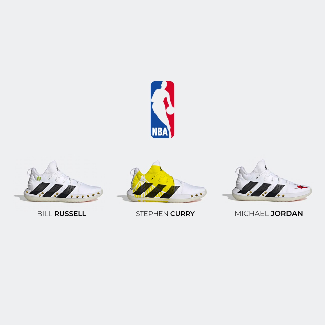 Pour chacun de ses joueurs, un emblème de leur franchise se retrouve sur leurs chaussures. Pour Stephen Curry et Michael Jordan, j’ai placé le blason de leur équipe sur une partie de la chaussure et pour Bill Russell un trèfle, symbole de la ville de Boston possédant une grande communcauté irlandaise. Les bagues sur les talons représentent les titres NBA que chacun a remporté.